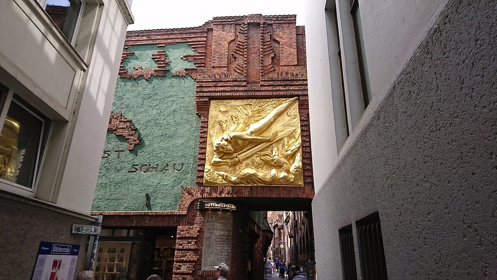 On Böttcherstraße, the golden arc hints at Bremen’s maritime history—gold was often a sign of success and wealth from trade.