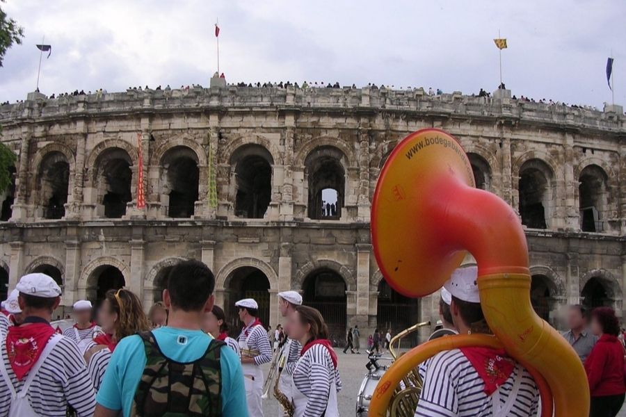 Nîmes changes completely during Feria. Banners and flags hang across old Roman streets, and music pours out from every corner.