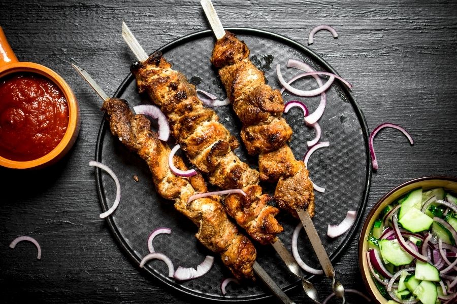 - Grilled bull kebabs