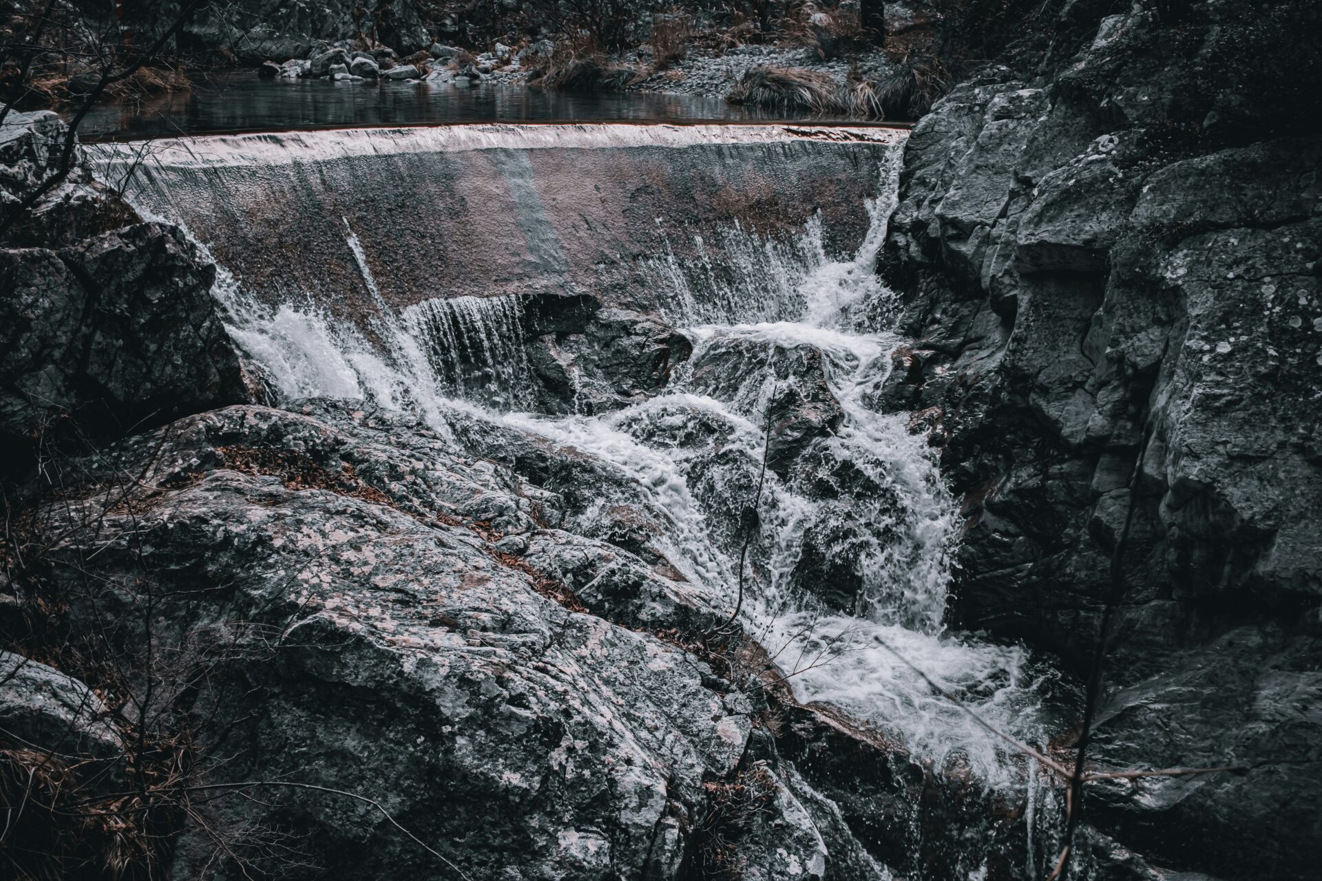 As I went deeper into the gorge, streams rushed alongside the trail. Water raced over smooth stones, turning little drops and corners into a network of clear ribbons.