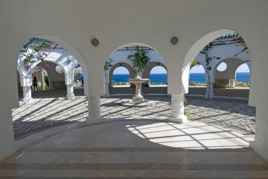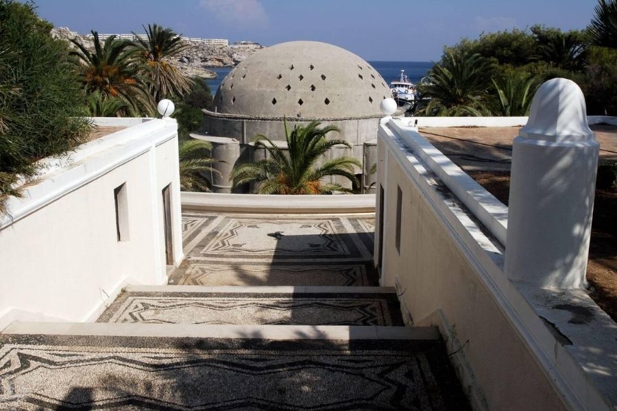 Kallithea Springs sits just 9 kilometers from Rhodes city, perched on the island’s eastern coast.