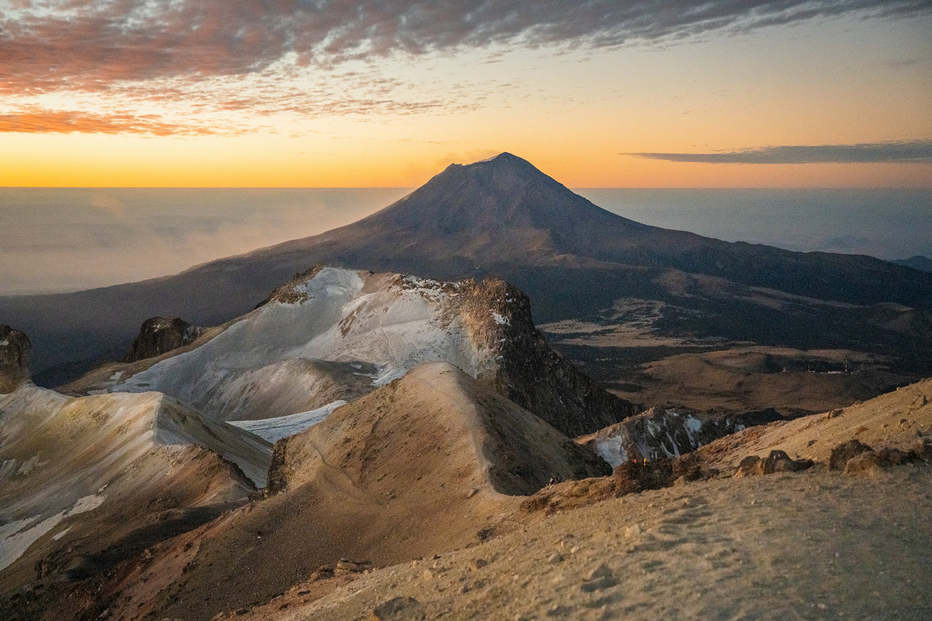 Iztaccíhuatl features mixed rock and ice climbing on the upper ridges. Multiple summits connect via technical ridges, adding to the challenge.