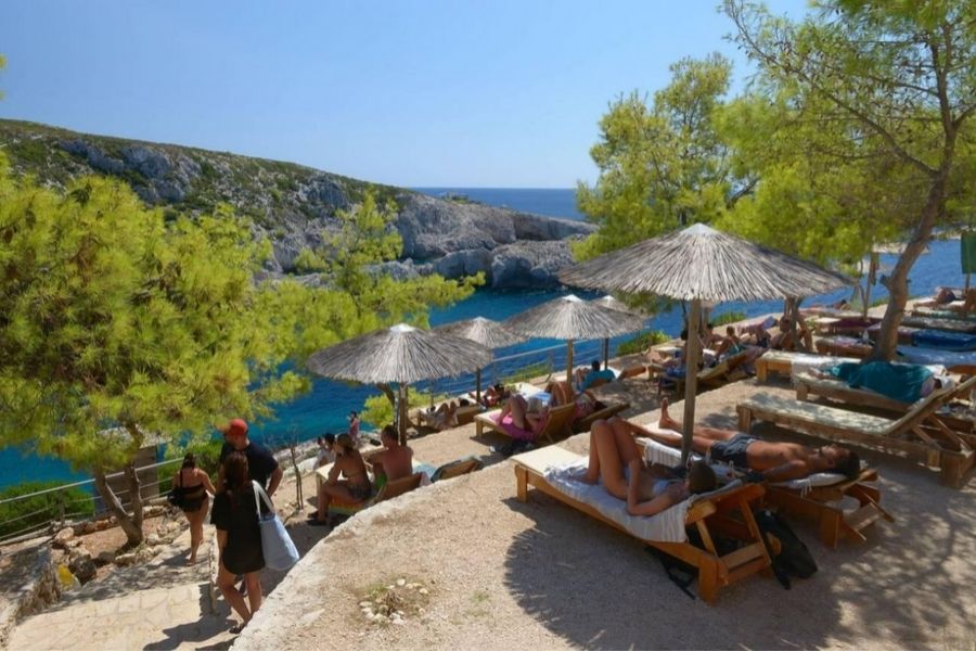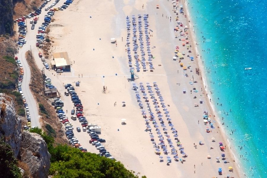 Some secluded beaches need a hike down the cliffs. Porto Limnionas, for example, takes about 15 minutes on foot from the parking area.