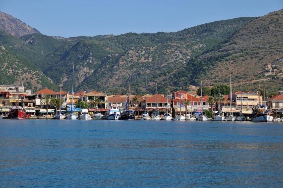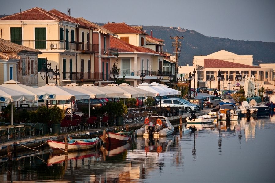 A Bustling Harbor Town on Lefkada’s East Coast