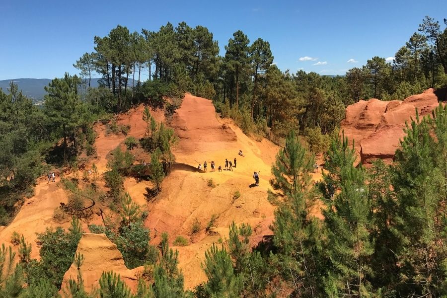 Near the entrance, there’s a famous lookout with a panoramic view of ochre cliffs and pine trees. It’s usually busy with photographers.