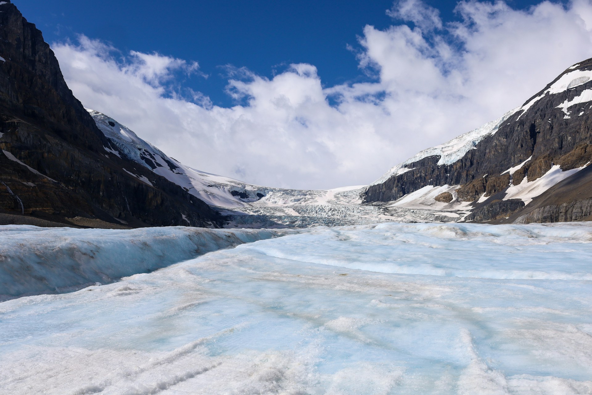 From the top, you get a sweeping view of the glacier between Mount Athabasca and Mount Andromeda.