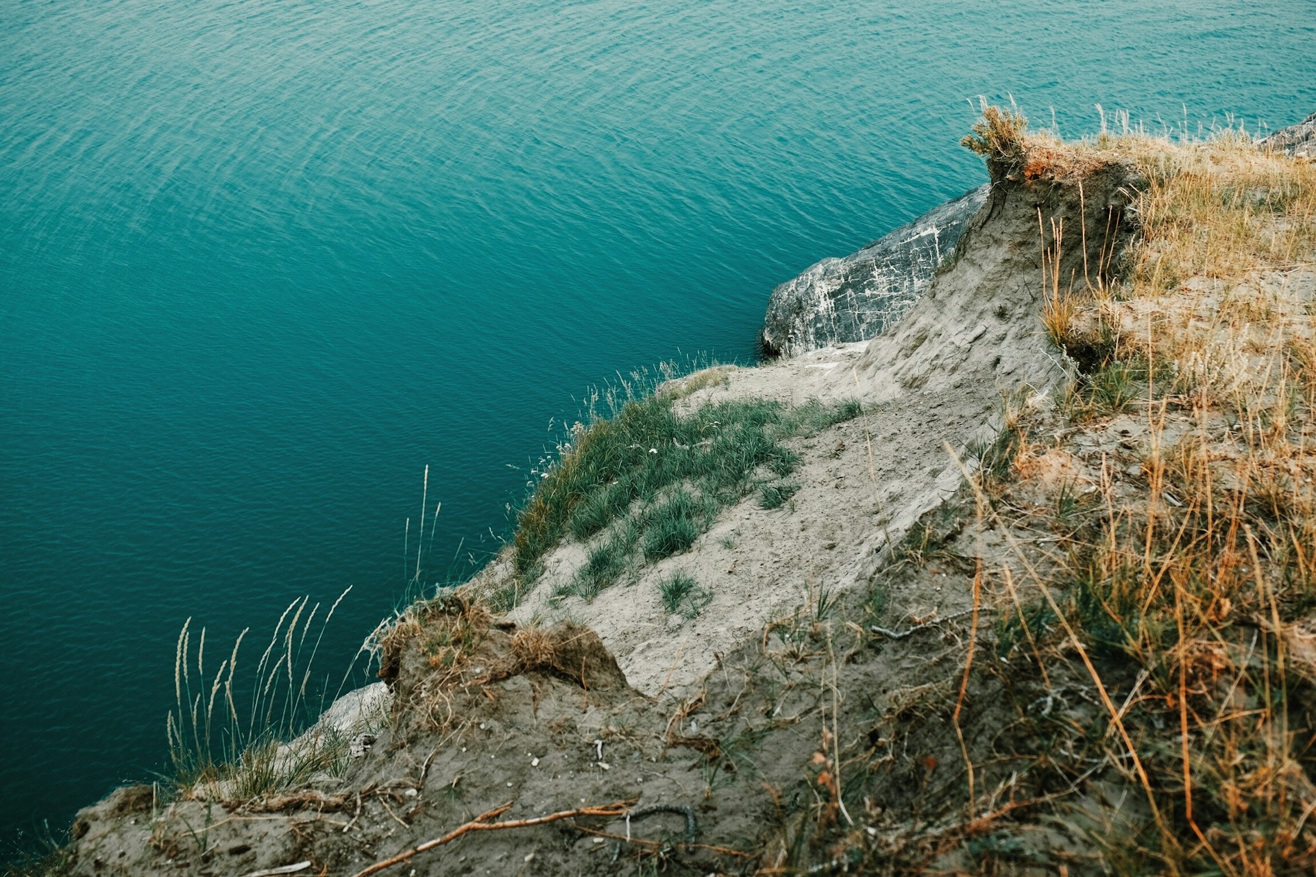 The lake’s unreal turquoise color comes from glacial silt—tiny rock particles suspended in the water.