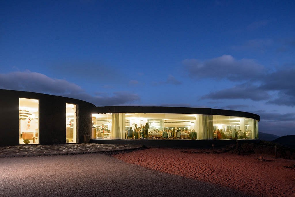 César Manrique dreamed up El Diablo as a circular, single-story building that just melts into the volcanic landscape. When you walk up, the main facade greets you with huge windows that open up to wild, panoramic views of the lava fields.