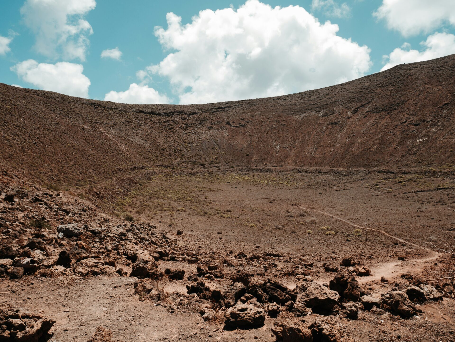 Caldera Rajada is one of the few craters you can actually approach on foot. Its radial fractures and dark lava flows are easy to spot.