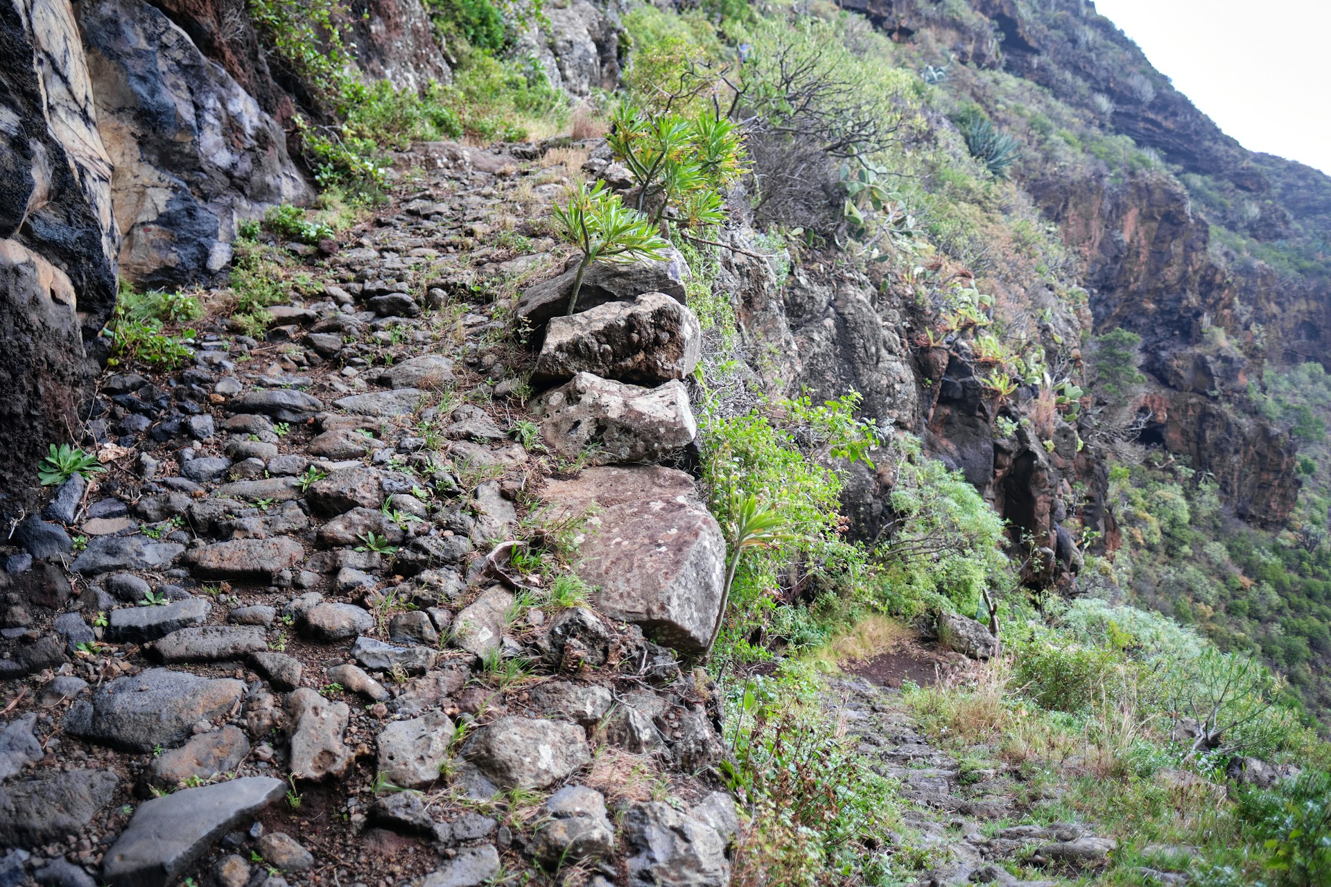 The trail clings to the cliffs, following old irrigation channels. I squeezed through tunnels and edged along narrow paths high above the ravines. Not for the faint-hearted, honestly.