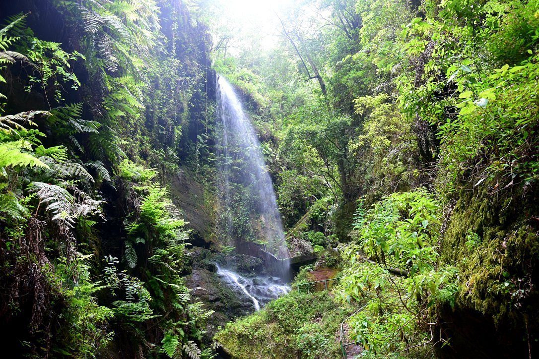 A wooden staircase lets you get close enough to feel the spray on your face. Giant ferns and laurel trees crowd around, and for a second, it almost feels like a movie set.